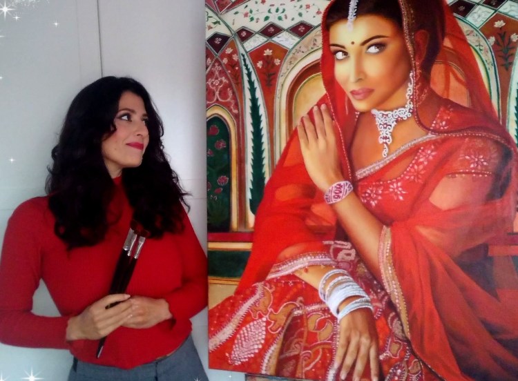 Bollywood diva in orange is a realistic painting daring woman, strong and sure of herself. The brown mane is worked with oil paste in dark tones and touches of red.