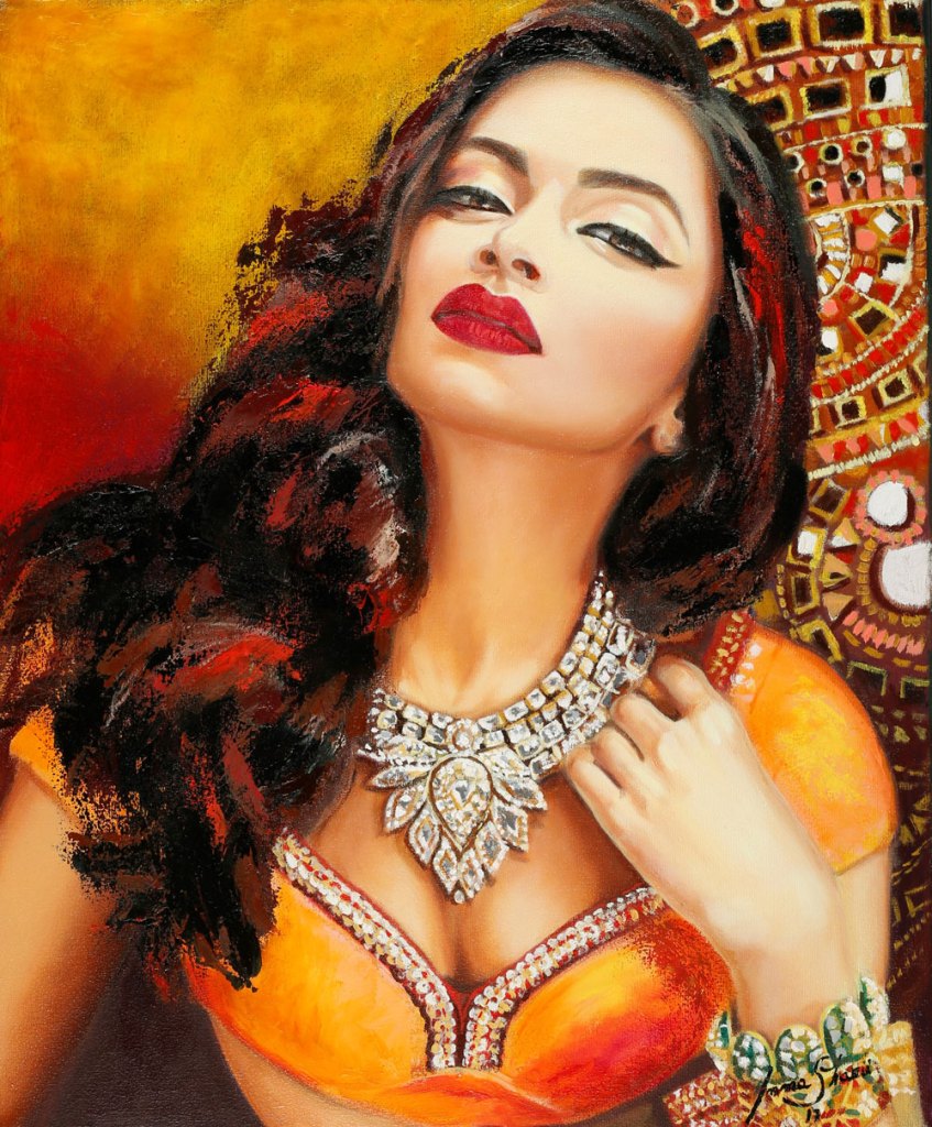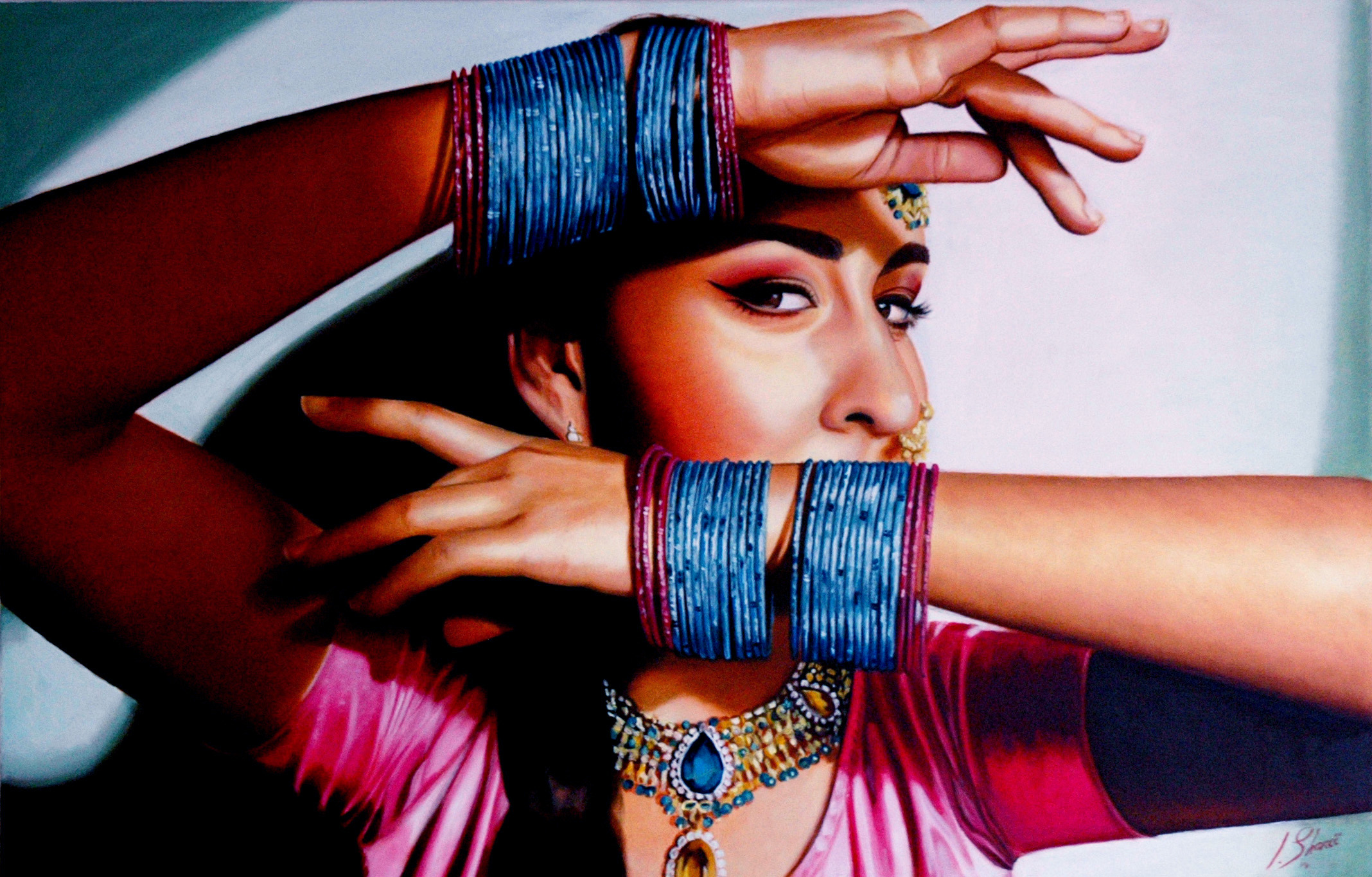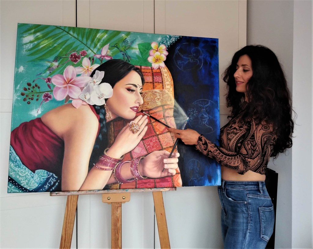 I started learning Indian dance but years later I delved into the art of painting, making oil portraits inspired by Bollywood cinema.